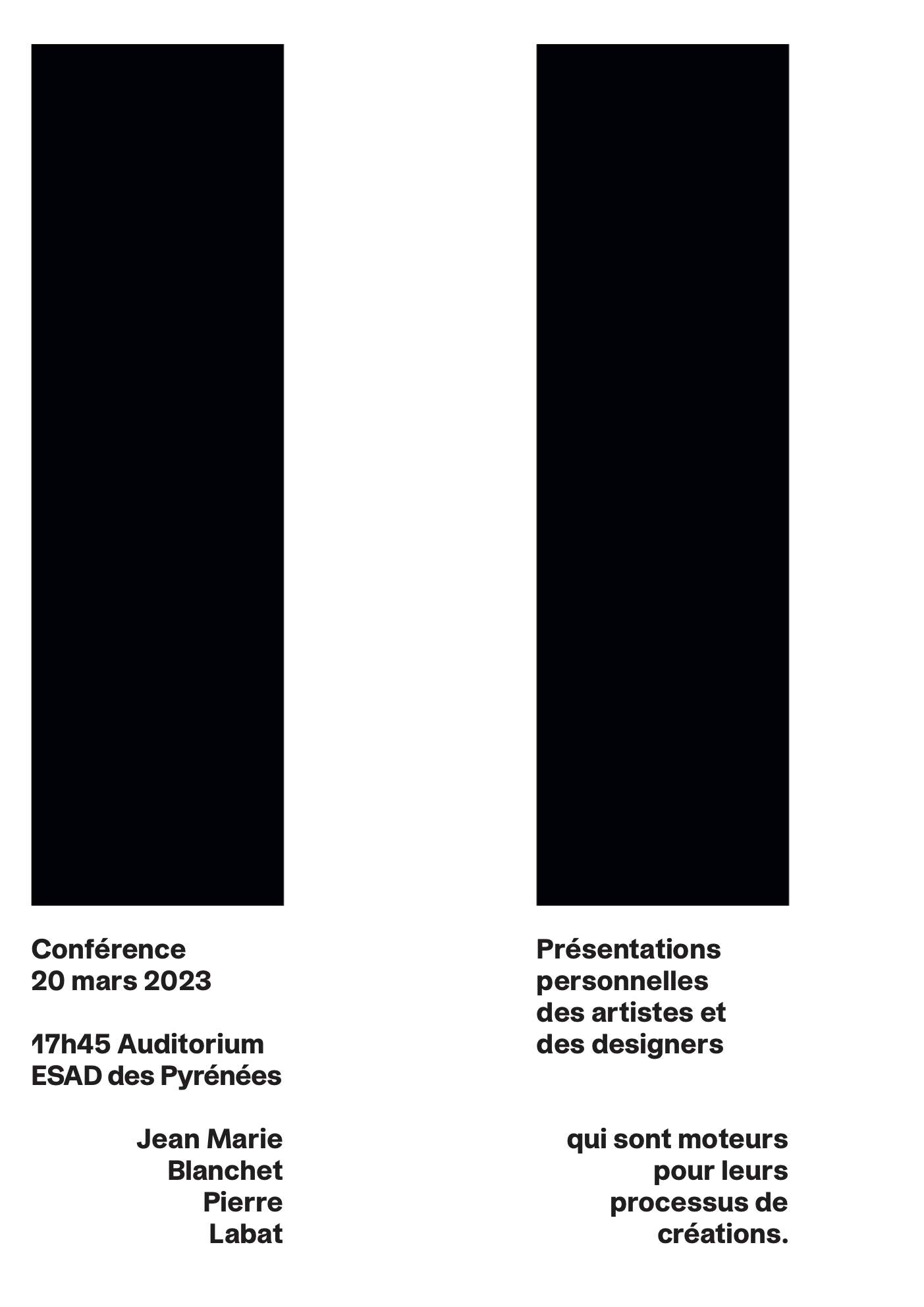 Jean-Marie Blanchet et Pierre Labat, artistes enseignants à l’ESAD Pyrénées en peinture et volumes respectivement, présenteront leur travail personnel et les artistes et designers qui inspirent leurs processus de création.