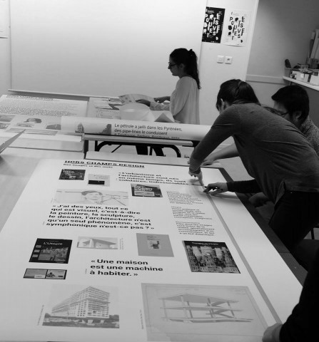 Atelier de travail des étudiants en 4e année design graphique multimedia du pôle image / édition de l’ÉSA Pyrénées —> préparation des supports de présentation de la scénographie pour la Biennale Européenne du Patrimoine Urbain — Toulouse PROGRAMME : BIENNALE EUROPÉENNE DU PATRIMOINE URBAIN ATELIER PERMIS D’EXPÉRIMENTER — 12 Novembre — 15h00 15h – « De quoi est fait cet art qu’on insuffle dans les territoires ? » / Dans la ruche Table ronde avec Valérie Mazouin, directrice du centre d’art La Chapelle Saint-Jacques (Saint-Gaudens), Karine Mathieu, chargée de projet d’exposition les Abattoirs-Frac Midi-Pyrénées, et David Coste, artiste et enseignant à l’ÉSA Pyrénées — Pau Tarbes, site de Pau et à l’isdaT beaux-arts En avant-première à « Proue au sommet d’une falaise », exposition — résidence expérimentale qui se déroulera au → Centre d’art La Chapelle Saint-Jacques, à Saint-Gaudens (14 nov2016 / 2 fév2017), les acteurs de ce projet partenarial confrontent leurs points de vue, « situés » par leurs institutions respectives, sur les relations de l’art contemporain au territoire