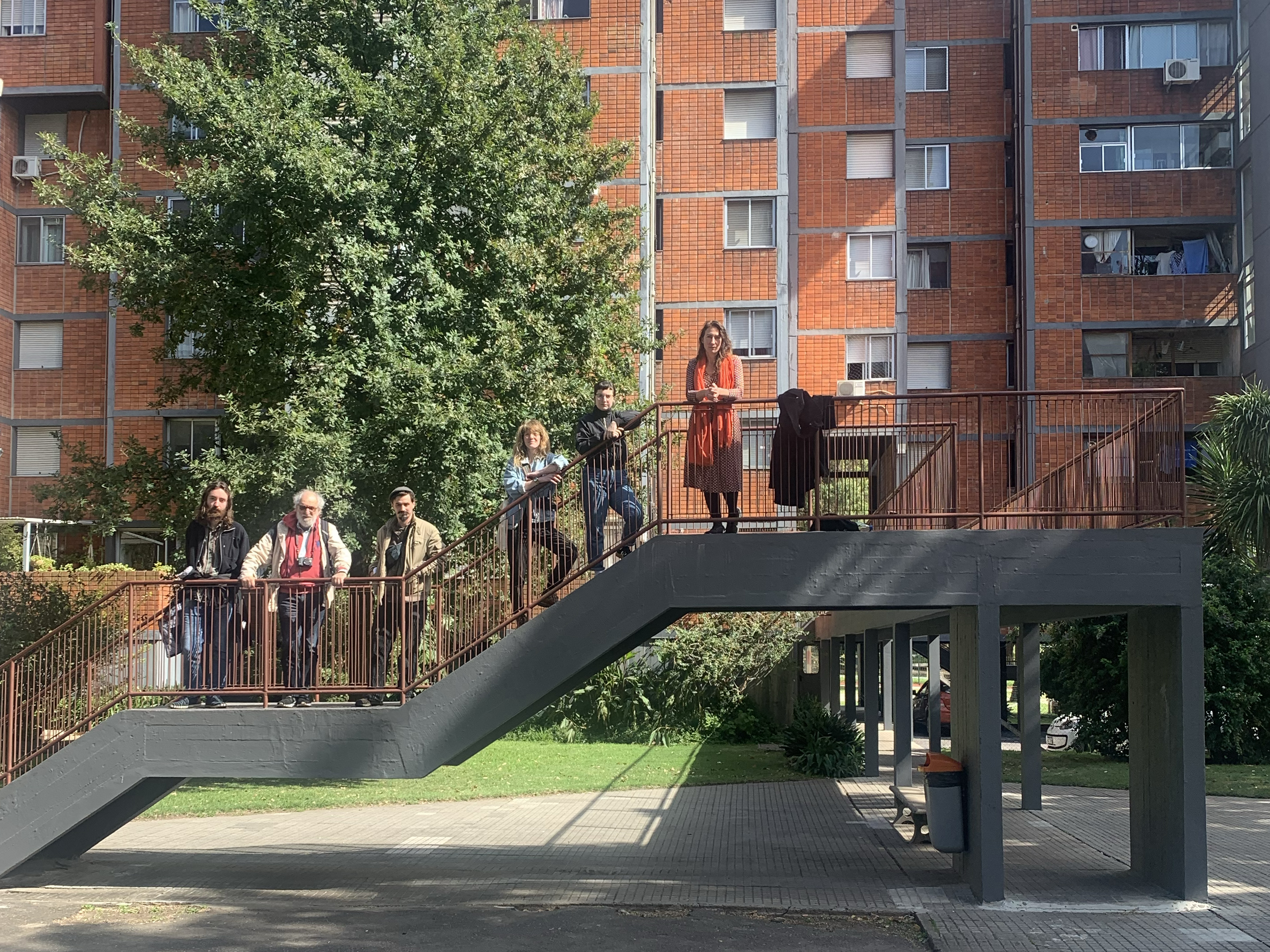 Le groupe de recherche avec Jack Couriel, architecte, devant le Gran Complejo, cooperativa de arquitectura, le 15/04/22
